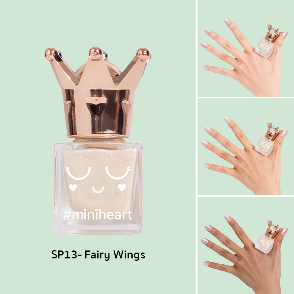 ใหม่! สีทาเล็บที่ปรับระดับความทึบได้ ทา 1-2 ชั้นได้สีขาวมุกเหลือบเขียวบางๆ ทาเพิ่มจะได้สีที่ทึบขึ้น พร้อมมอบเอฟเฟ็คเปลี่ยนสีอะไรก็ได้ให้เป็นสีมุกเหลือบเขียวเมื่อทาทับสีอื่นๆ สามารถล้างออกได้ด้วยน้ำยาล้างสีทาเล็บทั่วไป (สีธรรมดา) หรือล้างออกง่ายกว่าด้วย มินิฮาร์ท มิราเคิล เนล คัลเลอร์ รีมูฟเวอร์